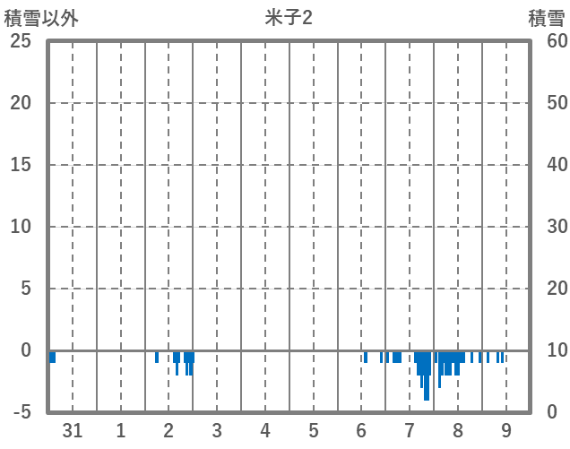 | 日 | 時 | 気温 | 降水 | 風向/風速 | 日照 | 積雪 | 降雪 |