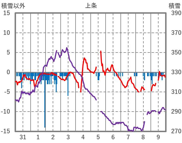 | 日 | 時 | 気温 | 降水 | 風向/風速 | 日照 | 積雪 | 降雪 |