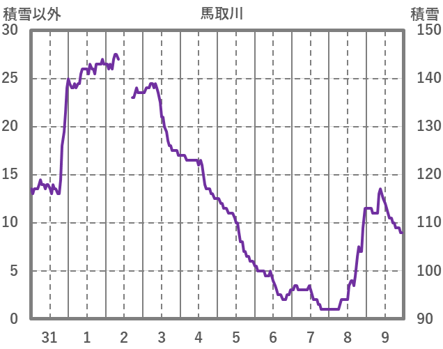 | 日 | 時 | 気温 | 降水 | 風向/風速 | 日照 | 積雪 | 降雪 |