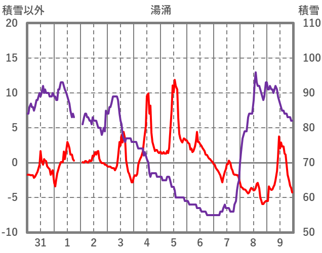 | 日 | 時 | 気温 | 降水 | 風向/風速 | 日照 | 積雪 | 降雪 |