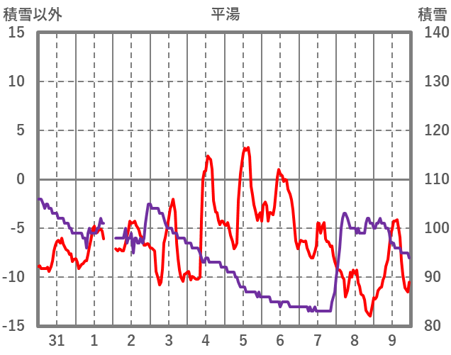 | 日 | 時 | 気温 | 降水 | 風向/風速 | 日照 | 積雪 | 降雪 |