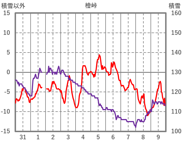 | 日 | 時 | 気温 | 降水 | 風向/風速 | 日照 | 積雪 | 降雪 |