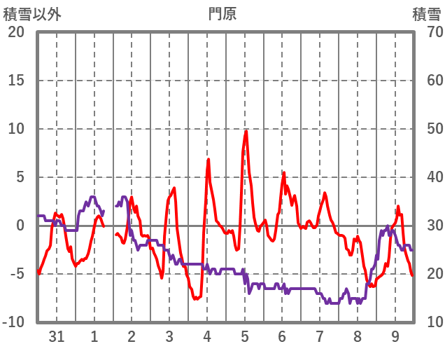 | 日 | 時 | 気温 | 降水 | 風向/風速 | 日照 | 積雪 | 降雪 |