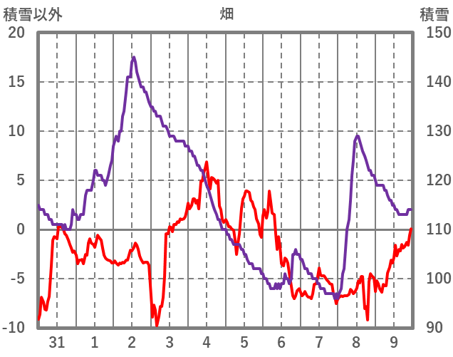 | 日 | 時 | 気温 | 降水 | 風向/風速 | 日照 | 積雪 | 降雪 |