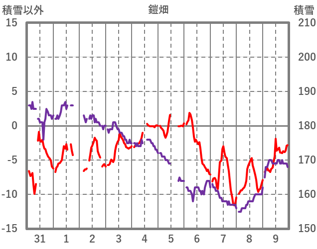 | 日 | 時 | 気温 | 降水 | 風向/風速 | 日照 | 積雪 | 降雪 |