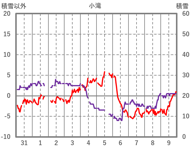 | 日 | 時 | 気温 | 降水 | 風向/風速 | 日照 | 積雪 | 降雪 |