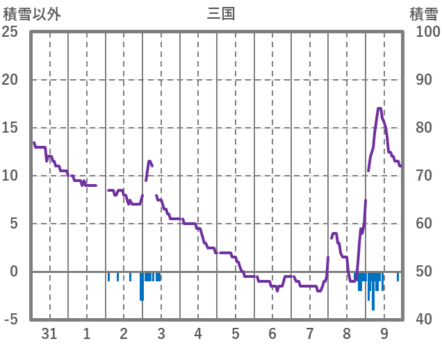 | 日 | 時 | 気温 | 降水 | 風向/風速 | 日照 | 積雪 | 降雪 |