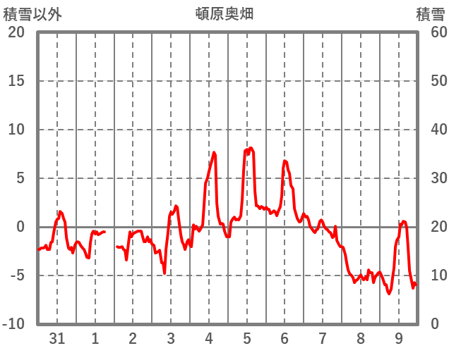 | 日 | 時 | 気温 | 降水 | 風向/風速 | 日照 | 積雪 | 降雪 |