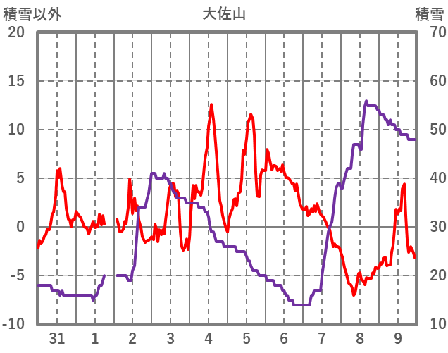 | 日 | 時 | 気温 | 降水 | 風向/風速 | 日照 | 積雪 | 降雪 |