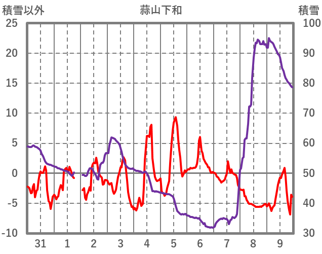 | 日 | 時 | 気温 | 降水 | 風向/風速 | 日照 | 積雪 | 降雪 |