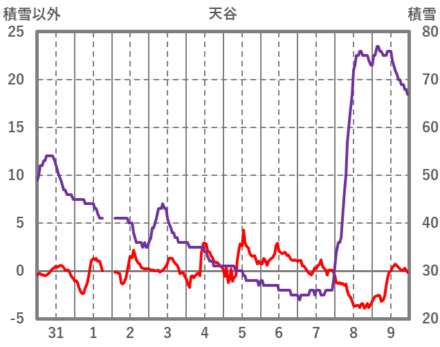 | 日 | 時 | 気温 | 降水 | 風向/風速 | 日照 | 積雪 | 降雪 |