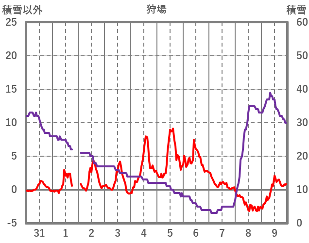 | 日 | 時 | 気温 | 降水 | 風向/風速 | 日照 | 積雪 | 降雪 |