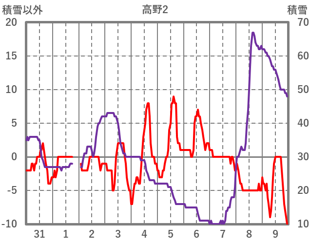 | 日 | 時 | 気温 | 降水 | 風向/風速 | 日照 | 積雪 | 降雪 |