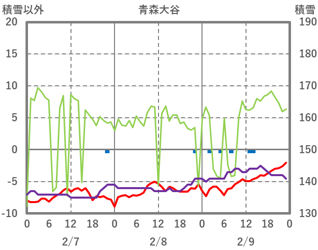 | 日 | 時 | 気温 | 降水 | 風向/風速 | 日照 | 積雪 | 降雪 |