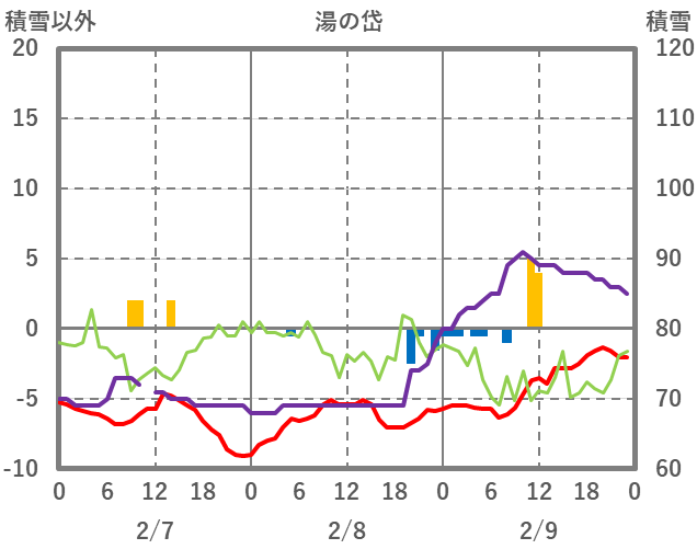 | 日 | 時 | 気温 | 降水 | 風向/風速 | 日照 | 積雪 | 降雪 |