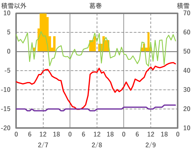 | 日 | 時 | 気温 | 降水 | 風向/風速 | 日照 | 積雪 | 降雪 |