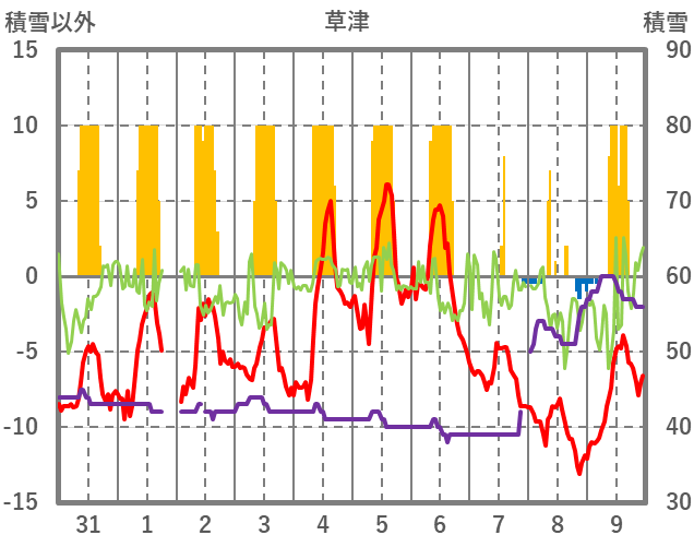 | 10 | -7.4 | 0 | NNW/4.9 | 60 | 60 | 0 | |