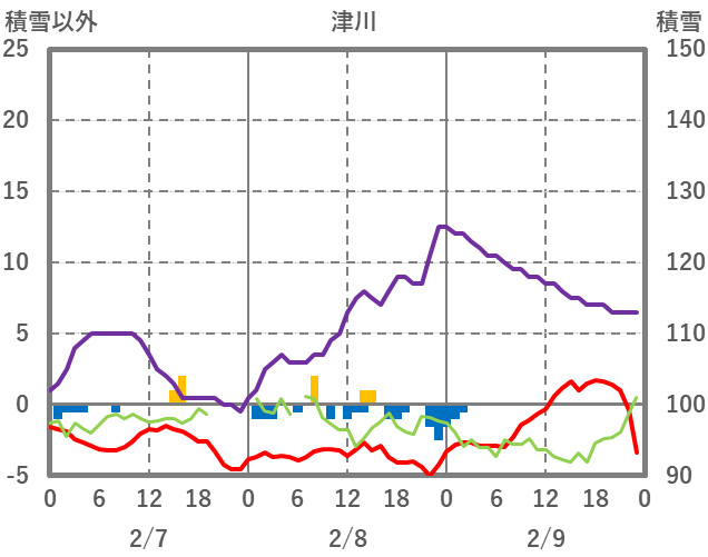 | 日 | 時 | 気温 | 降水 | 風向/風速 | 日照 | 積雪 | 降雪 |