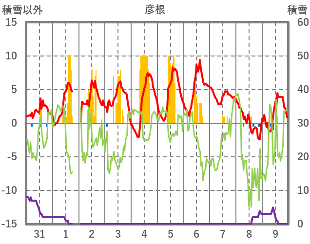 | 日 | 時 | 気温 | 降水 | 風向/風速 | 日照 | 積雪 | 降雪 |