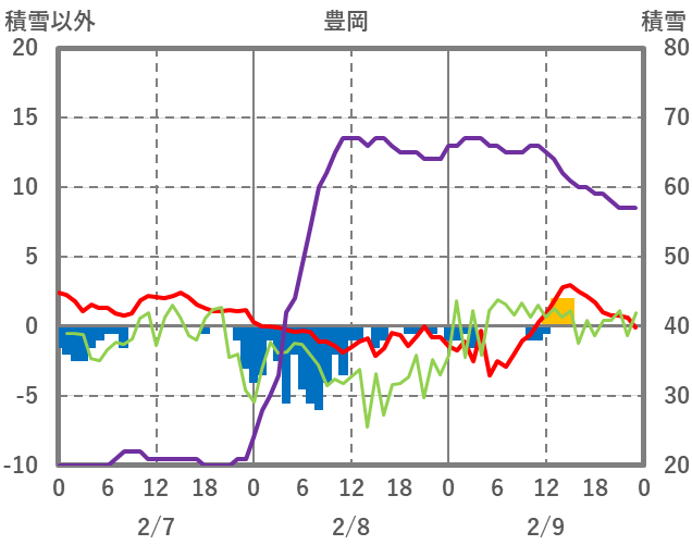 | 日 | 時 | 気温 | 降水 | 風向/風速 | 日照 | 積雪 | 降雪 |