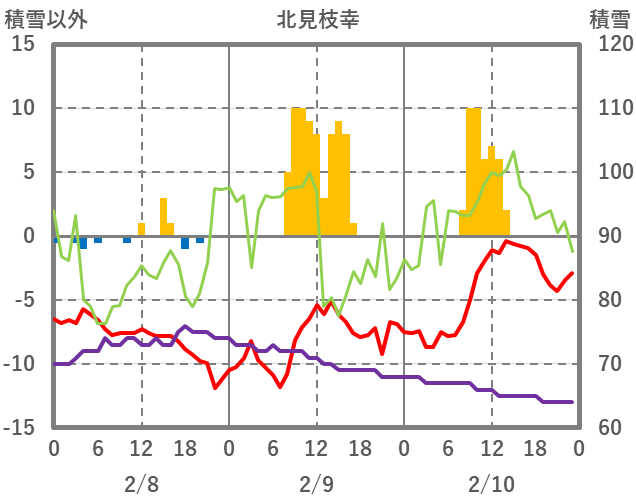 | 日 | 時 | 気温 | 降水 | 風向/風速 | 日照 | 積雪 | 降雪 |