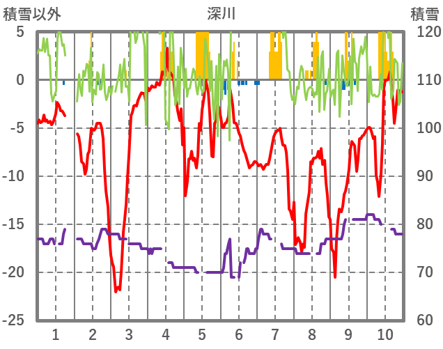 | 日 | 時 | 気温 | 降水 | 風向/風速 | 日照 | 積雪 | 降雪 |