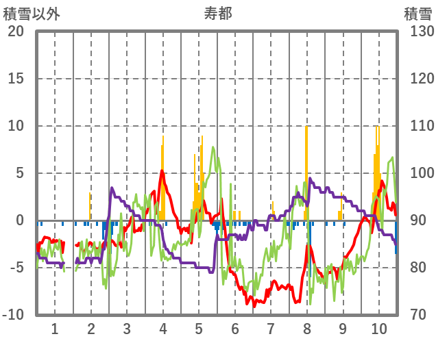 | 日 | 時 | 気温 | 降水 | 風向/風速 | 日照 | 積雪 | 降雪 |