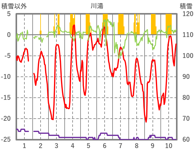 | 日 | 時 | 気温 | 降水 | 風向/風速 | 日照 | 積雪 | 降雪 |