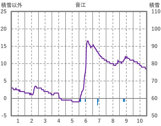 | 日 | 時 | 気温 | 降水 | 風向/風速 | 日照 | 積雪 | 降雪 |