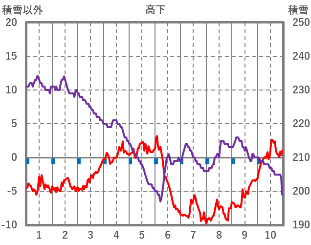 | 日 | 時 | 気温 | 降水 | 風向/風速 | 日照 | 積雪 | 降雪 |