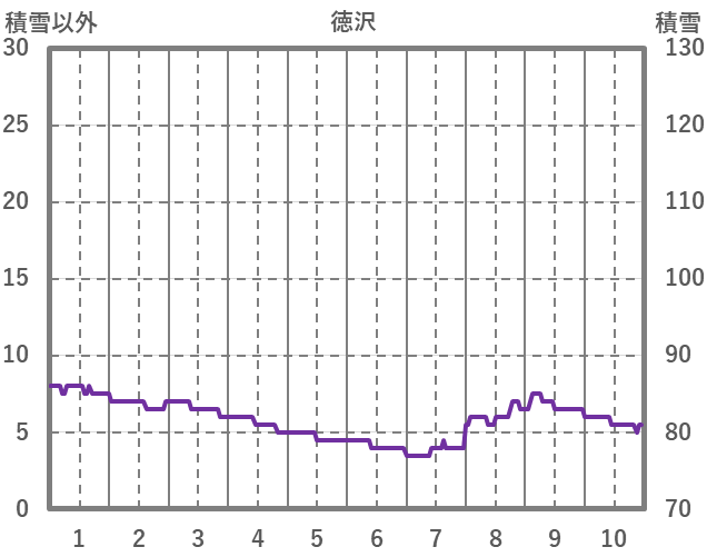 | 日 | 時 | 気温 | 降水 | 風向/風速 | 日照 | 積雪 | 降雪 |