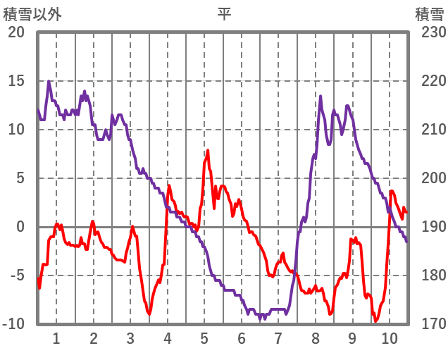 | 日 | 時 | 気温 | 降水 | 風向/風速 | 日照 | 積雪 | 降雪 |