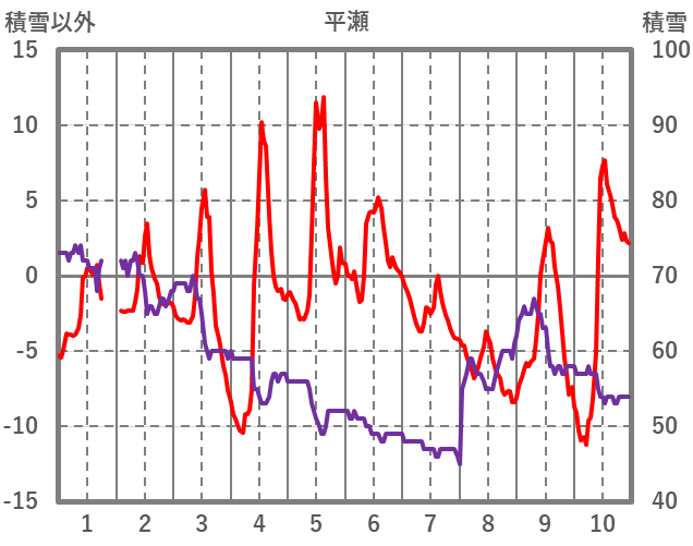 | 日 | 時 | 気温 | 降水 | 風向/風速 | 日照 | 積雪 | 降雪 |
