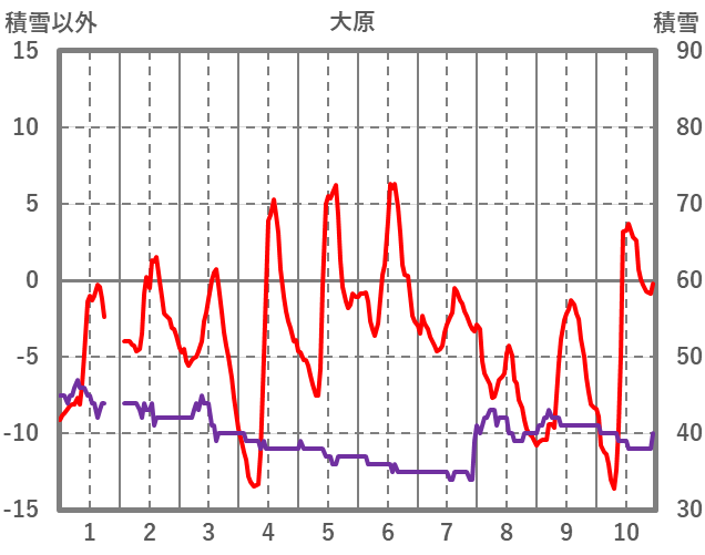 | 日 | 時 | 気温 | 降水 | 風向/風速 | 日照 | 積雪 | 降雪 |