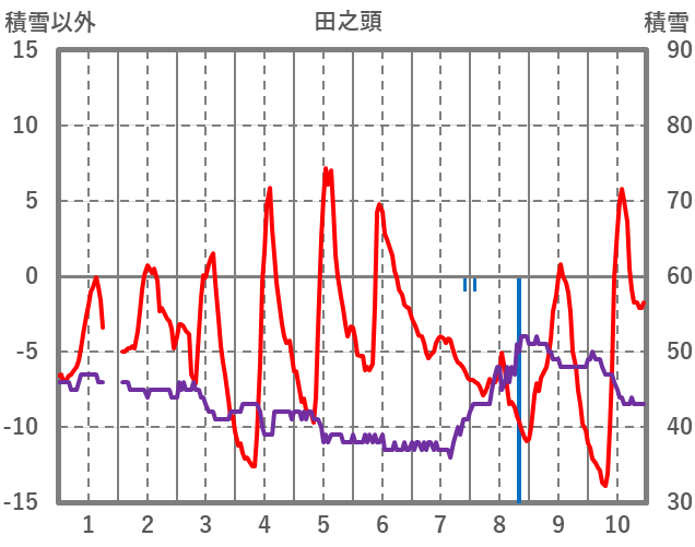 | 日 | 時 | 気温 | 降水 | 風向/風速 | 日照 | 積雪 | 降雪 |