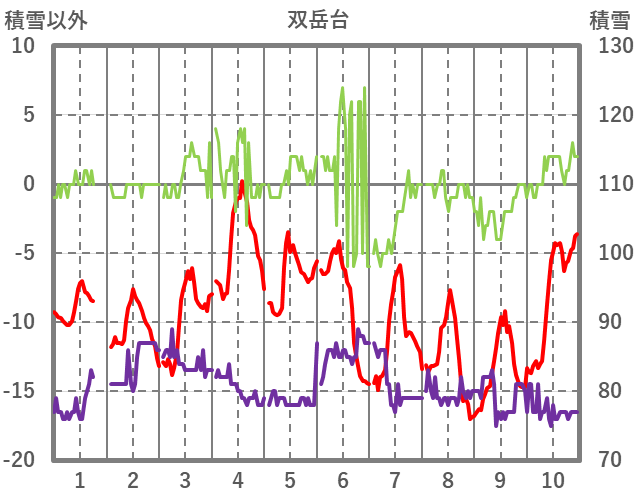 | 日 | 時 | 気温 | 降水 | 風向/風速 | 日照 | 積雪 | 降雪 |