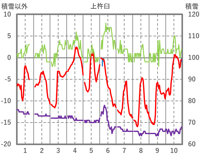 | 日 | 時 | 気温 | 降水 | 風向/風速 | 日照 | 積雪 | 降雪 |