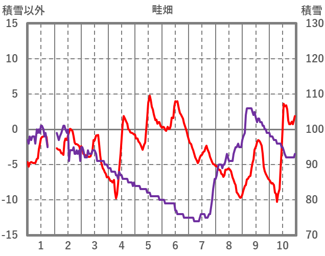 | 日 | 時 | 気温 | 降水 | 風向/風速 | 日照 | 積雪 | 降雪 |