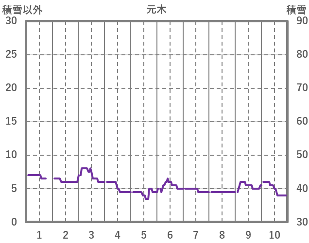 | 日 | 時 | 気温 | 降水 | 風向/風速 | 日照 | 積雪 | 降雪 |