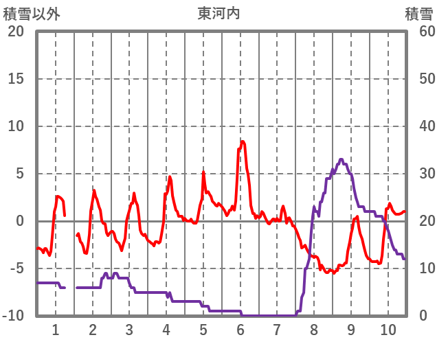 | 日 | 時 | 気温 | 降水 | 風向/風速 | 日照 | 積雪 | 降雪 |