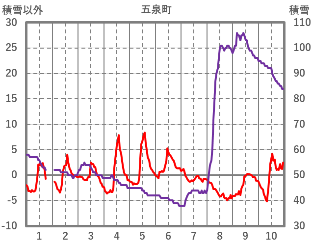| 日 | 時 | 気温 | 降水 | 風向/風速 | 日照 | 積雪 | 降雪 |