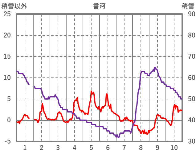 | 日 | 時 | 気温 | 降水 | 風向/風速 | 日照 | 積雪 | 降雪 |