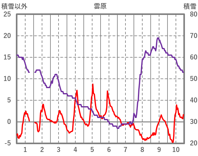 | 日 | 時 | 気温 | 降水 | 風向/風速 | 日照 | 積雪 | 降雪 |