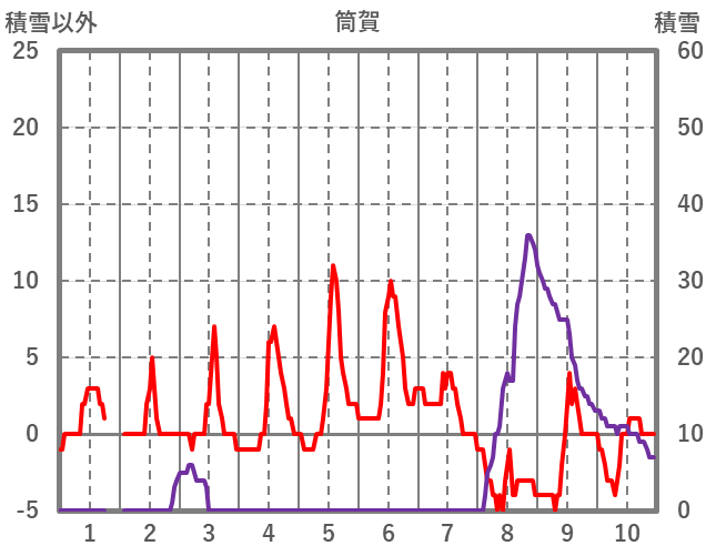 | 日 | 時 | 気温 | 降水 | 風向/風速 | 日照 | 積雪 | 降雪 |