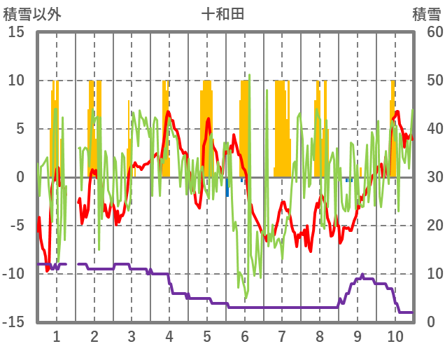 | 日 | 時 | 気温 | 降水 | 風向/風速 | 日照 | 積雪 | 降雪 |