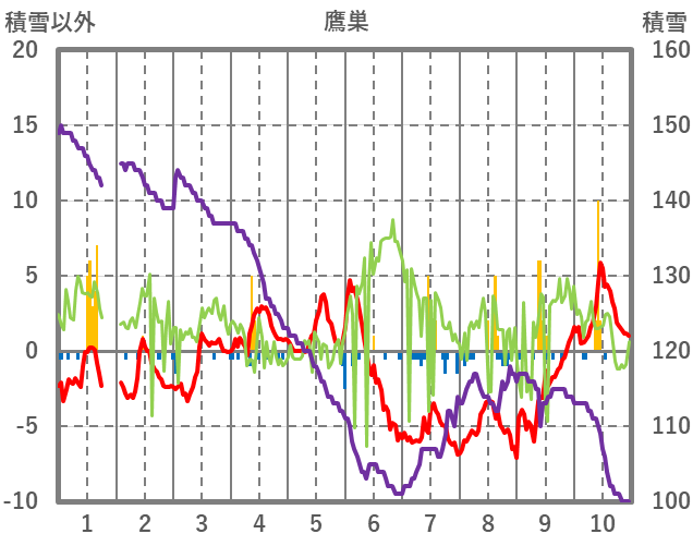 | 日 | 時 | 気温 | 降水 | 風向/風速 | 日照 | 積雪 | 降雪 |