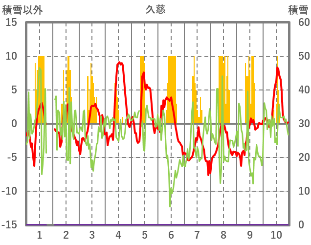 | 日 | 時 | 気温 | 降水 | 風向/風速 | 日照 | 積雪 | 降雪 |