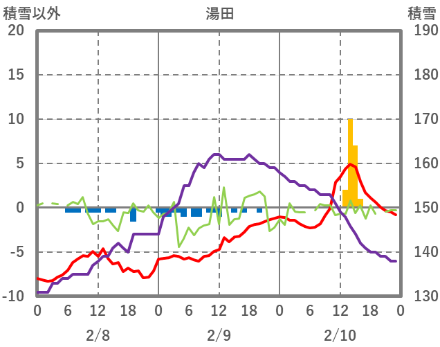 | 日 | 時 | 気温 | 降水 | 風向/風速 | 日照 | 積雪 | 降雪 |