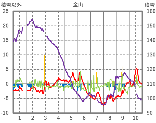 | 日 | 時 | 気温 | 降水 | 風向/風速 | 日照 | 積雪 | 降雪 |