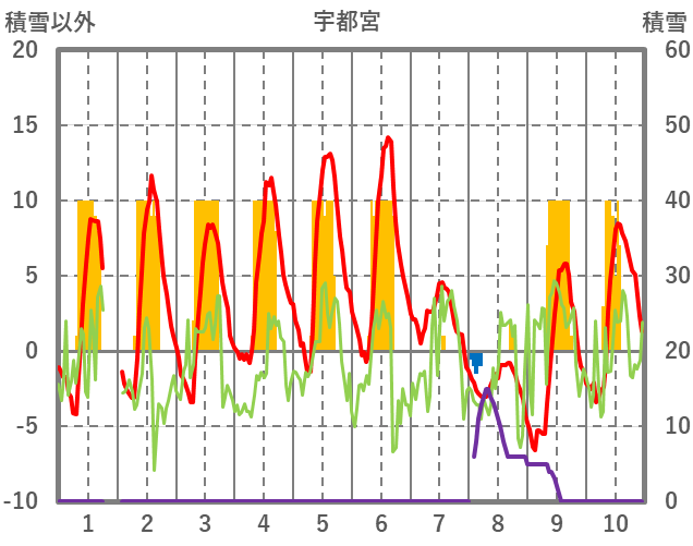 | 日 | 時 | 気温 | 降水 | 風向/風速 | 日照 | 積雪 | 降雪 |